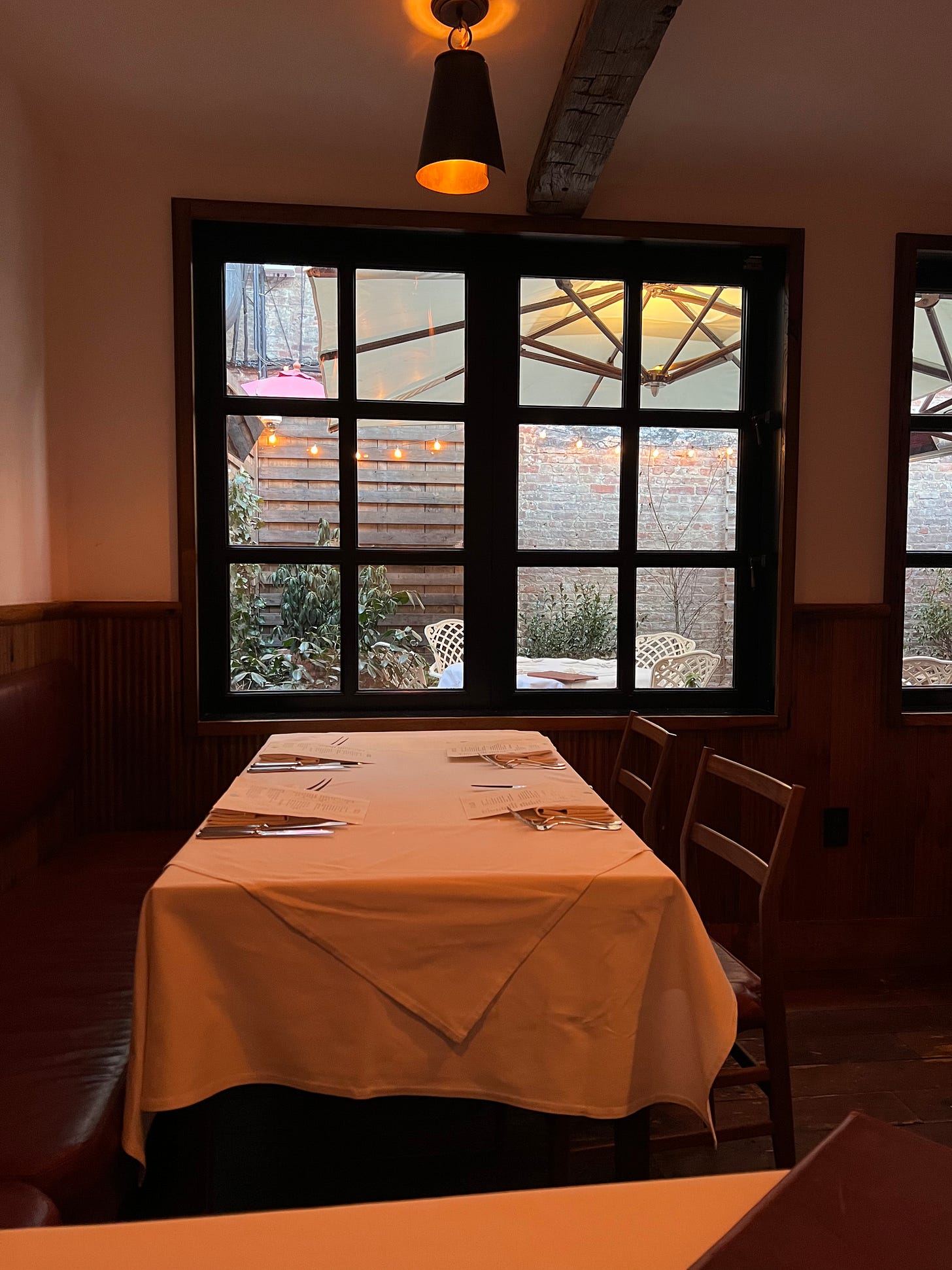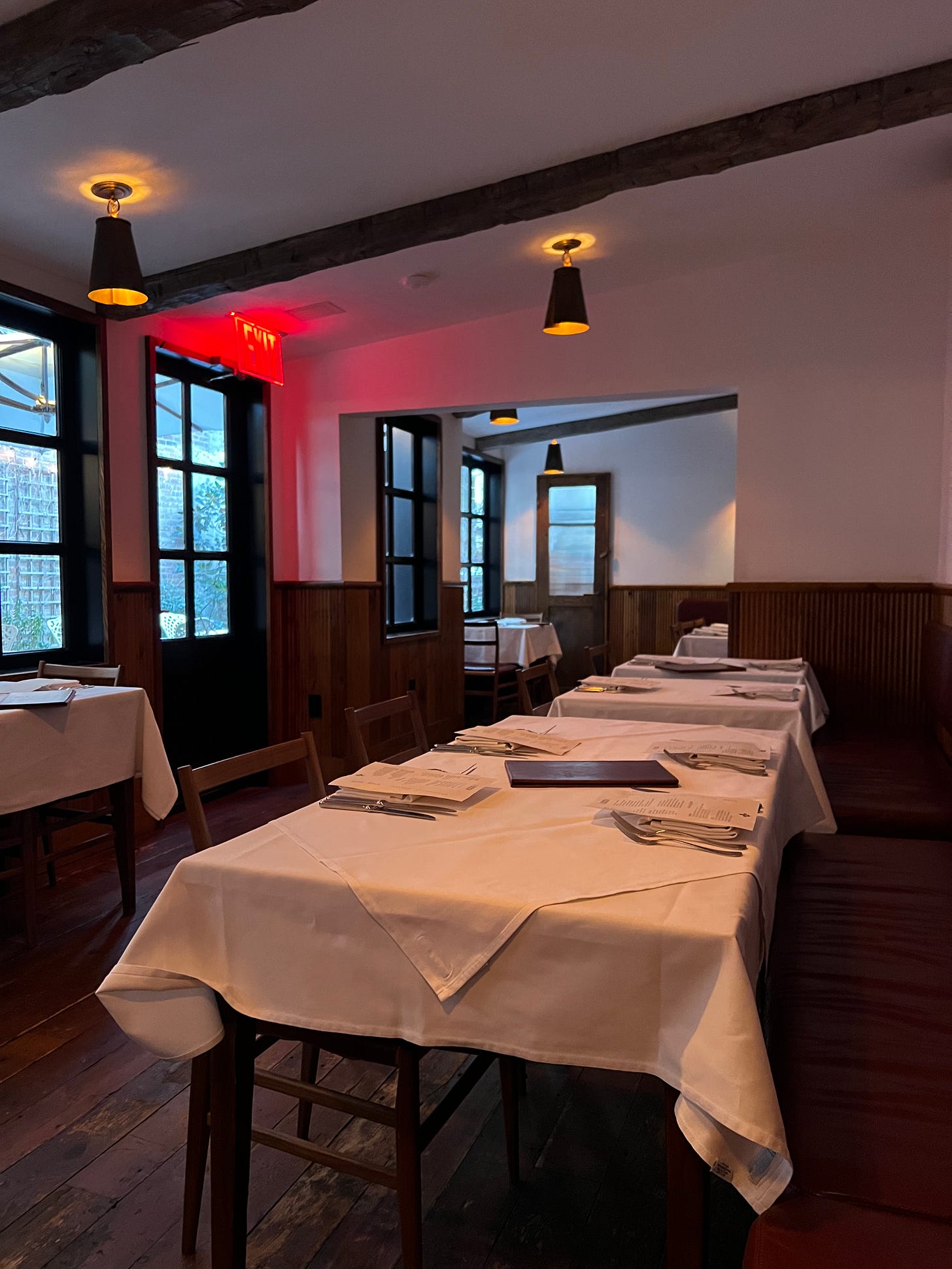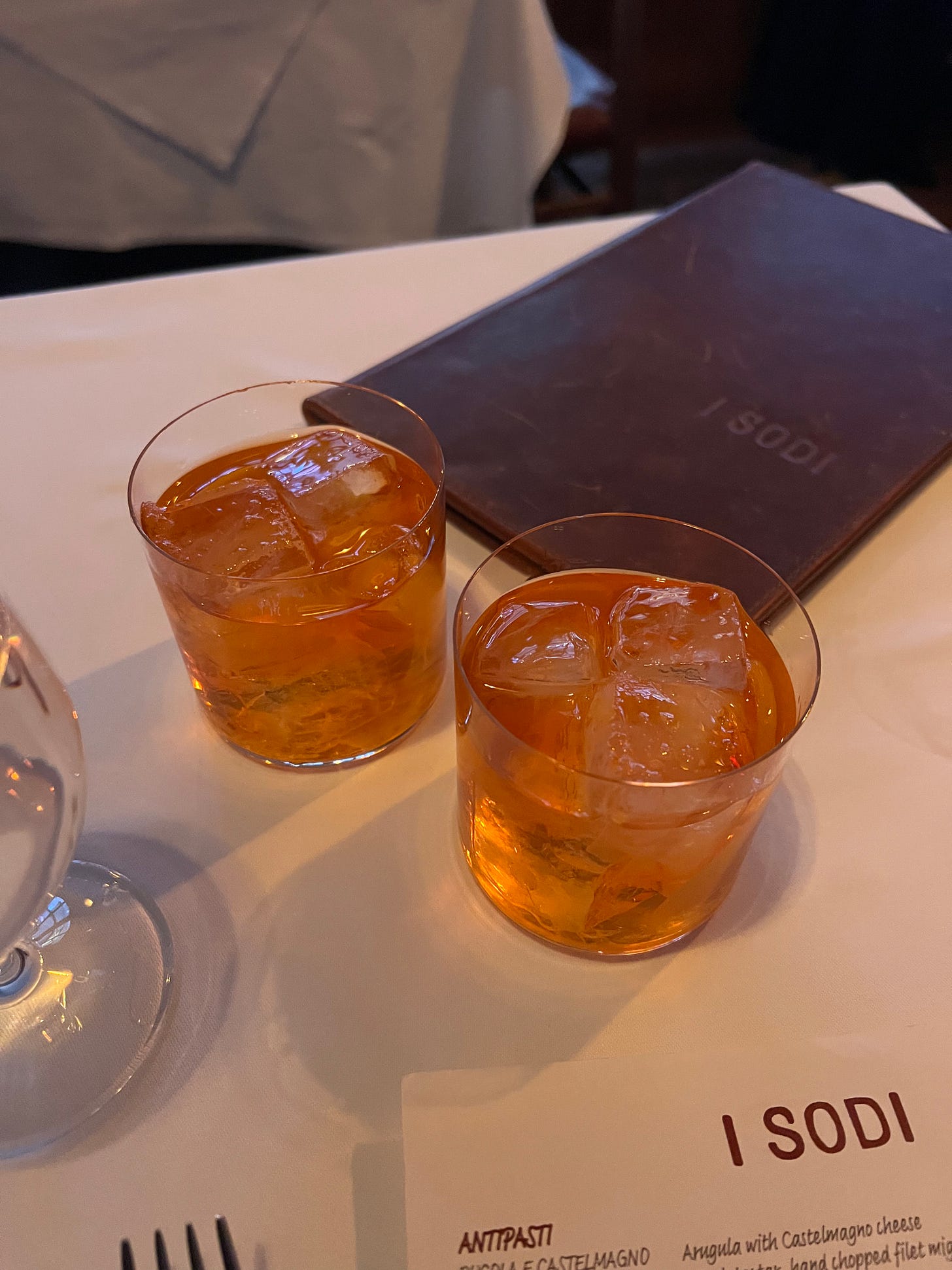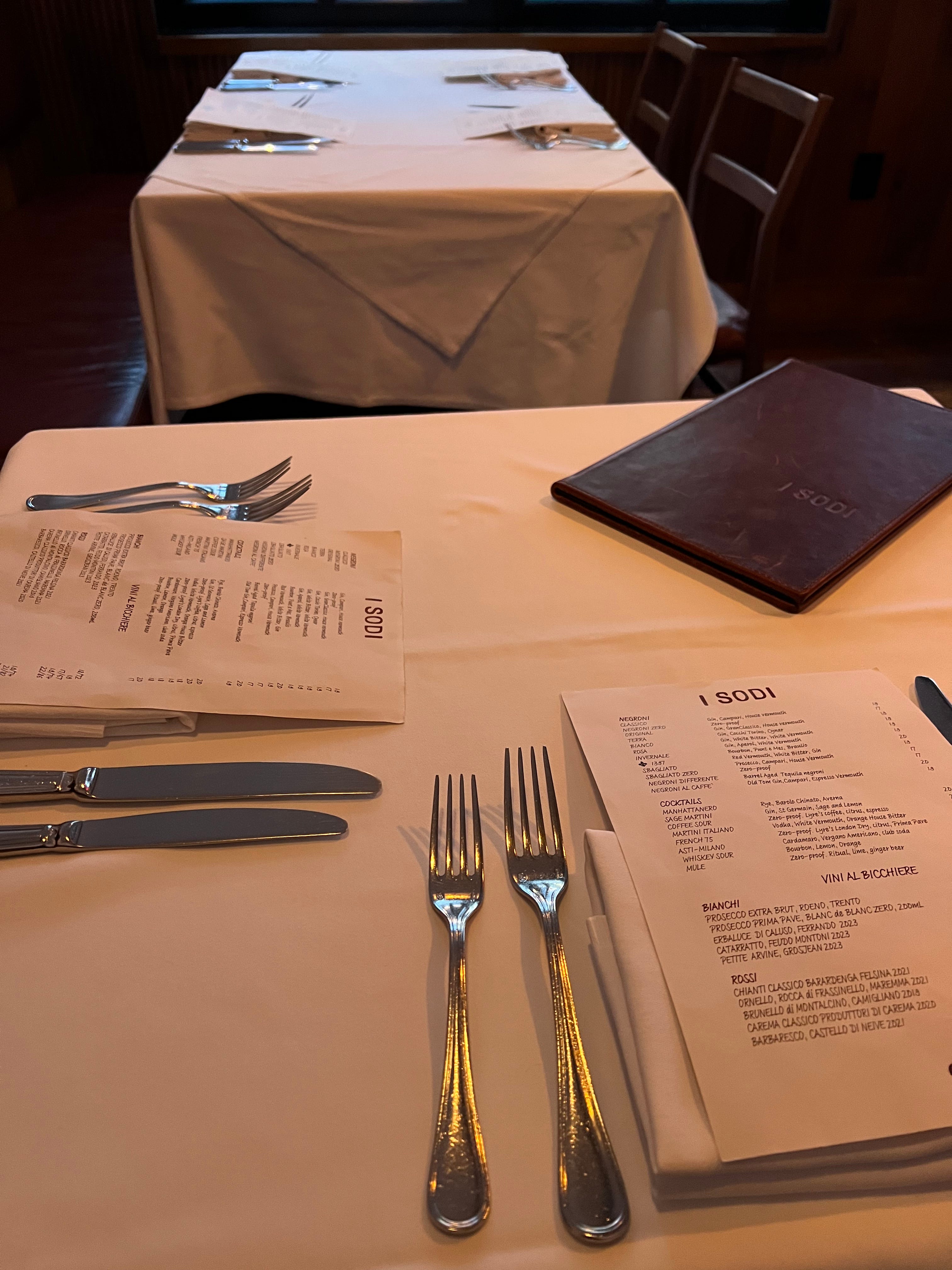 4:30pm finally came and the host unlocked the door and welcomed the long line of people to I Sodi! He said if you have a reservation to step to the front and if you are walking in they will take your name and try to get you in. Luckily, we were first (a point of pride), and the host took my number which programmed our wait into my Resy, so now it is officially documented that I attended this spot (yay). They ended up seating us at a table in the back dining room, which I did not know existed, so we did not end up eating near our friend from the line, but we made sure to give her a run down of what we ordered on our way out and we hoped to see each other again in the area at another fantastic restaurant. When a waiter set us up at our corner booth (very cozy) looking out upon their back patio, he asked if we had a reservation or walked in, to which we responded that we walked in and added that we’d been waiting outside since around 3:20pm. He responded “that’s too early” with a laugh. I seriously love the people here.
