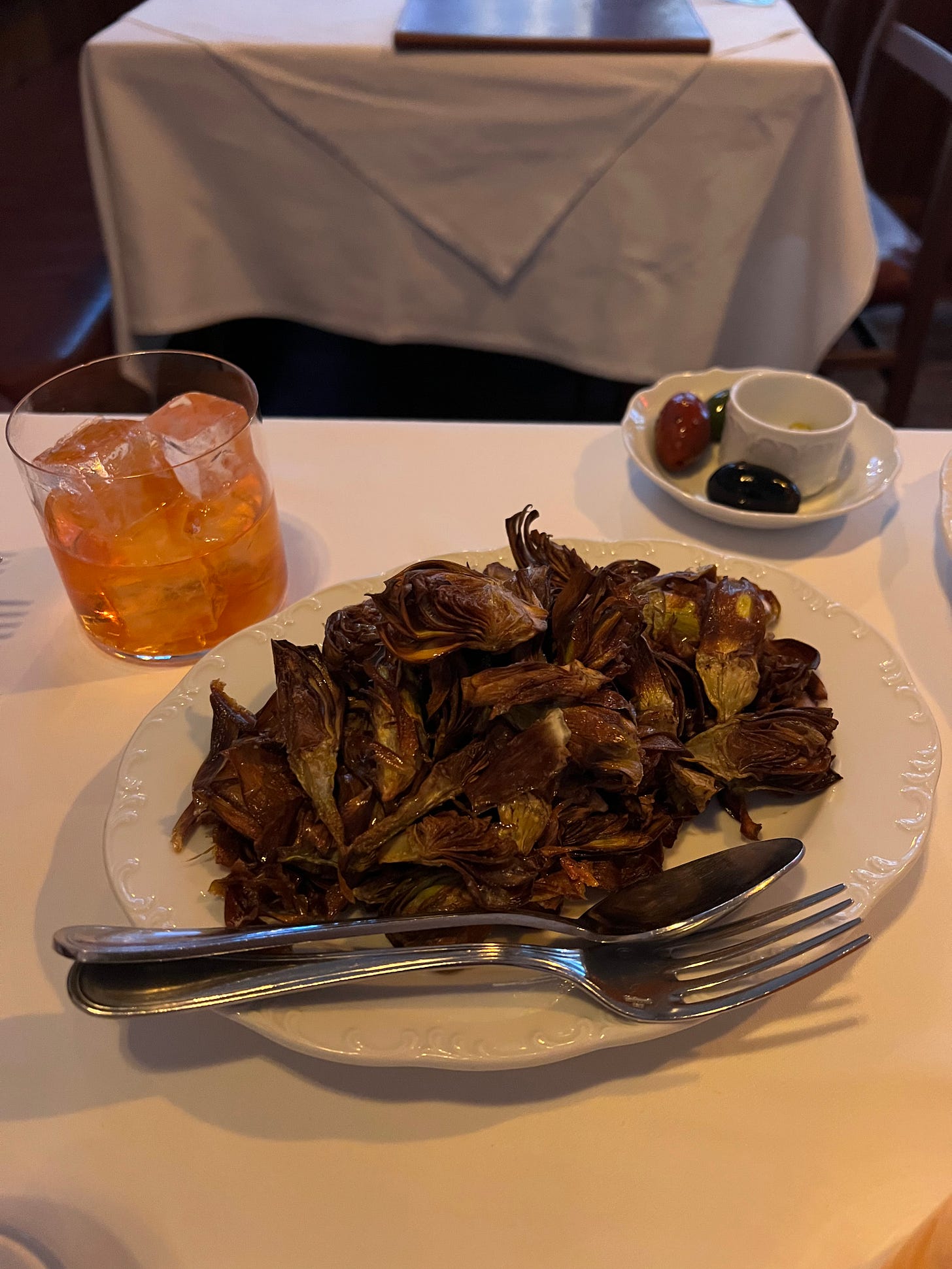Appetizers: We ordered one of these specials our waiter detailed: the highly-touted fried artichokes. I heard from the online diner community that the artichokes here were a must-order. When they dropped these on our table, we were wondering if we would like them because they were sauce-less. We were wondering, how good could just plain artichokes really be? Very good as it turns out.