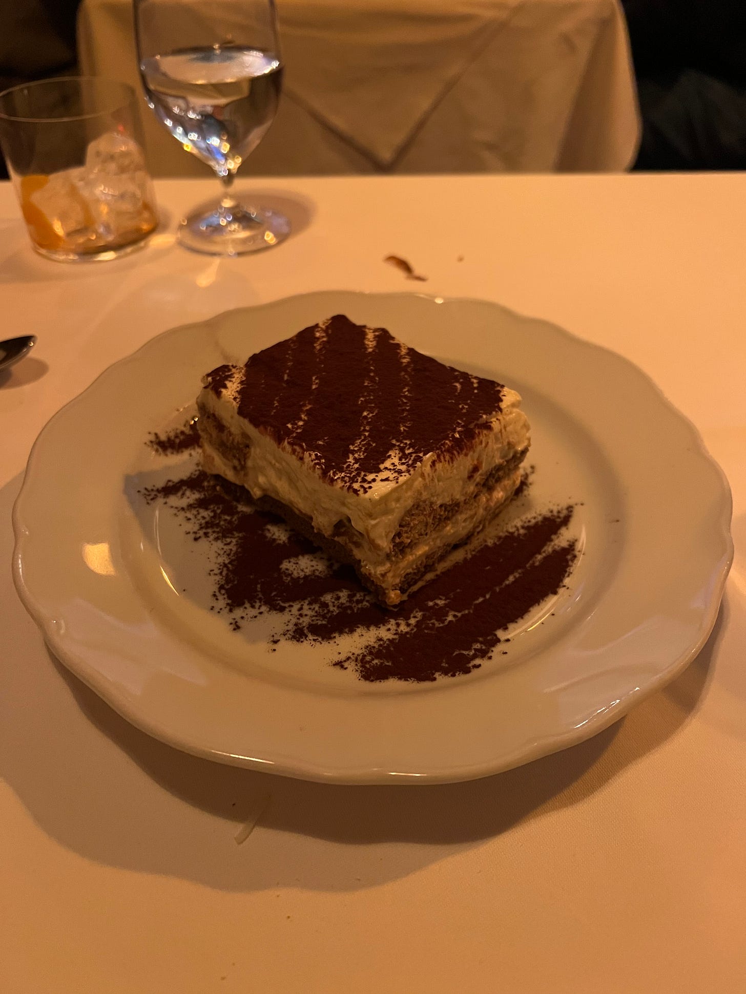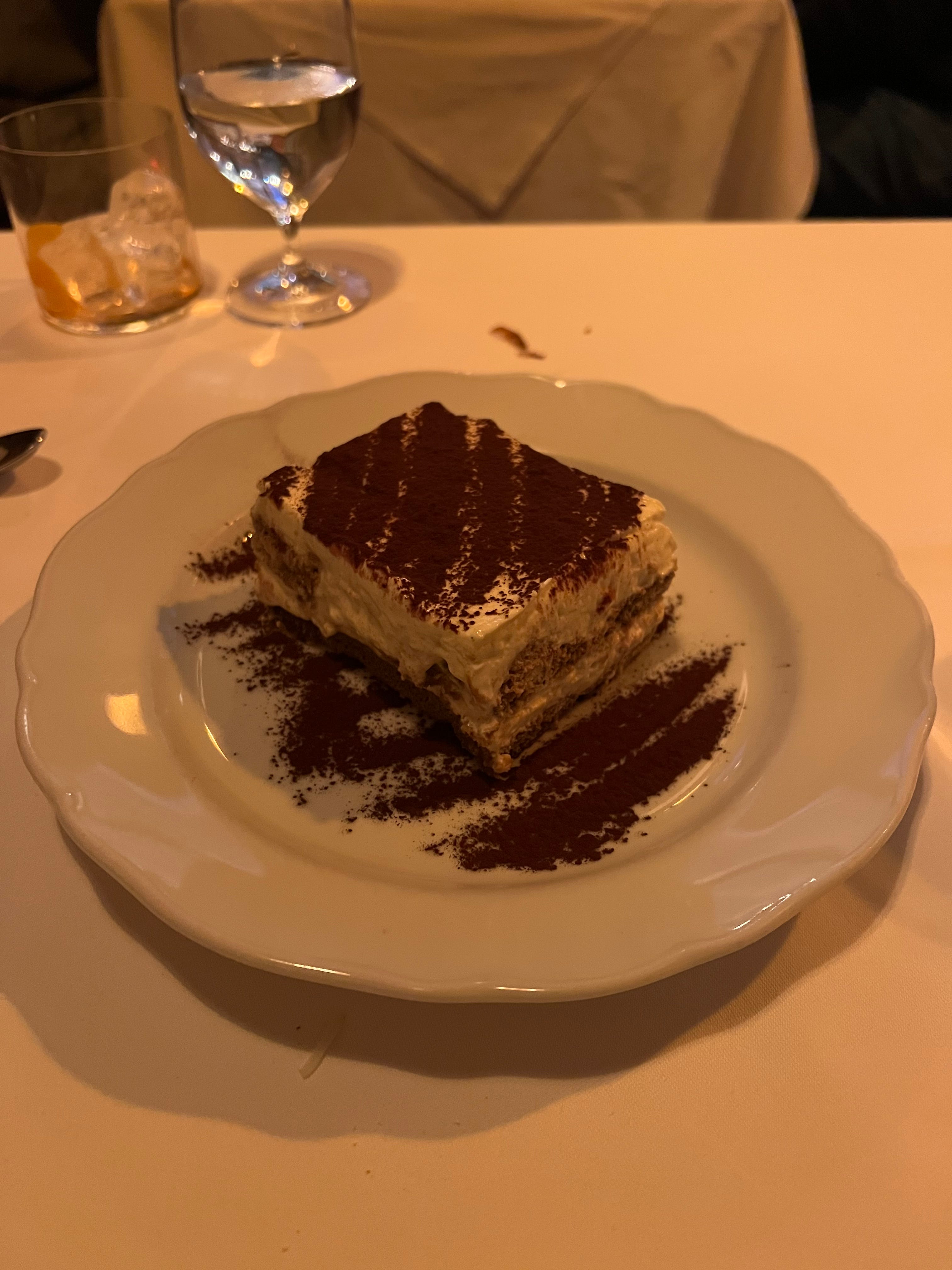 Dessert: Everyone talks about I Sodi’s Tiramisu. Therefore, we felt obligated to order the Tiramisu. I am sounding like a broken record when I say that this was another classic that is just made simple here. The coffee flavor was not as strong as we were expecting it to be, but maybe that is how it is meant to be? The layer of mascarpone on top was pretty thick, which took some getting used to, but the dessert was delicious. They also have a good Flourless Chocolate Cake, or so we’ve heard, but we did not partake this time. I will say that I have had other tiramisus in the city that I would choose to order over this one.